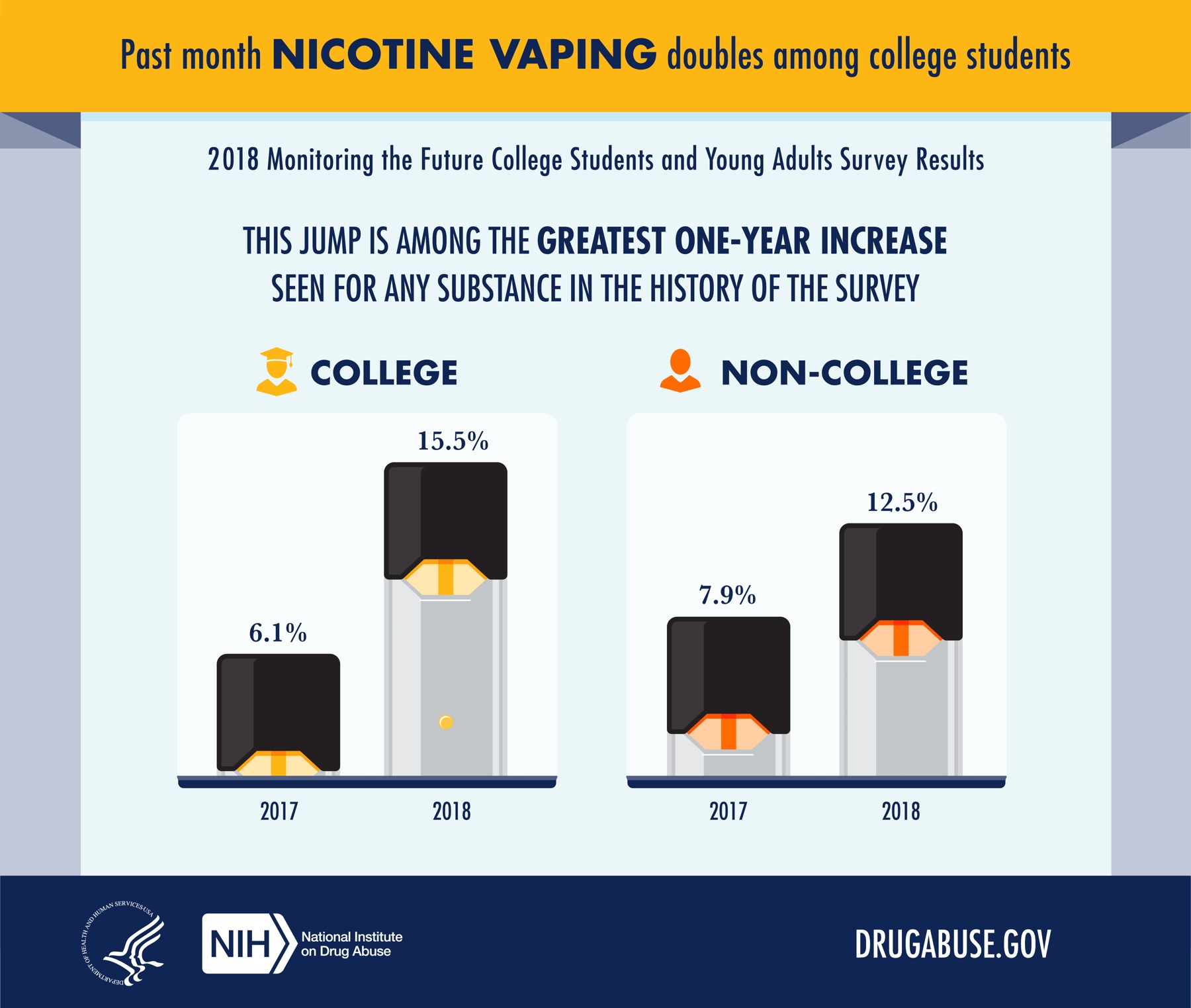 - e-cigarettes have become increasingly popular among young people; in 2019, over 5 million middle and high school students reported using e-cigarettes in the past month.