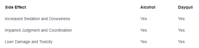 both alcohol and dayquil have sedative effects on the body. when consumed together, these effects can be intensified, leading to increased sedation and drowsiness. this combination can impair your ability to stay alert and focused, making activities such as driving or operating machinery extremely dangerous.