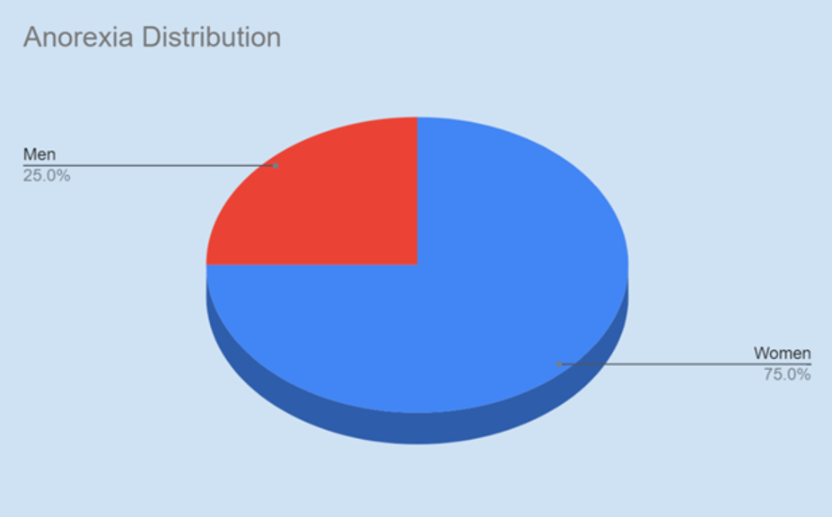 - women are more likely to develop anorexia than men, with a female-to-male rhttps://opentextbooks.clemson.edu/atio of 10:1.