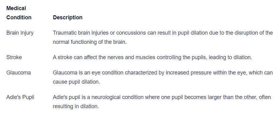 various medical conditions can cause pupil dilation as a symptom. some of these conditions include: