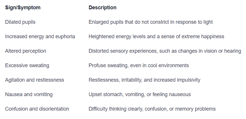 recognizing the signs and symptoms of club drug use is crucial in identifying potential drug-related issues. while the specific effects may vary depending on the drug and individual, common signs and symptoms include: