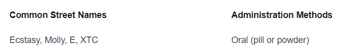 mdma, commonly known as ecstasy or molly, is a synthetic psychoactive drug that produces feelings of euphoria, increased energy, and emotional openness. it is often consumed in pill or powder form and is popular in club and rave environments.