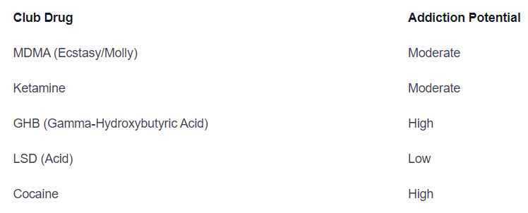 the addiction potential can vary based on individual factors, such as genetic predisposition and psychological vulnerability. however, it’s essential to approach club drugs with caution due to the risk of developing dependence and addiction.