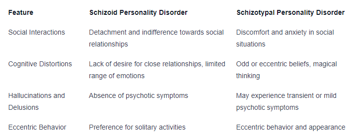 while schizoid and schizotypal personality disorders have their distinct features, there are also symptoms that overlap between the two. these overlapping symptoms can make it challenging to differentiate between the disorders.