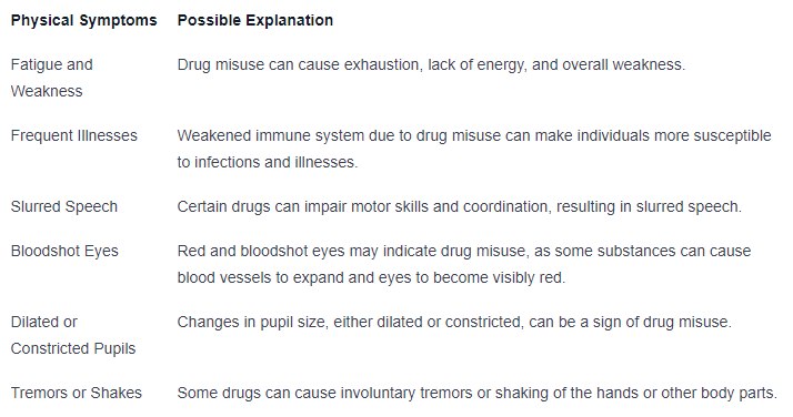 recognizing these physical signs of drug misuse can be an important step in helping someone who may be struggling with substance abuse. it’s essential to approach the situation with empathy and compassion, offering support and encouraging professional help to address the underlying issues effectively.
